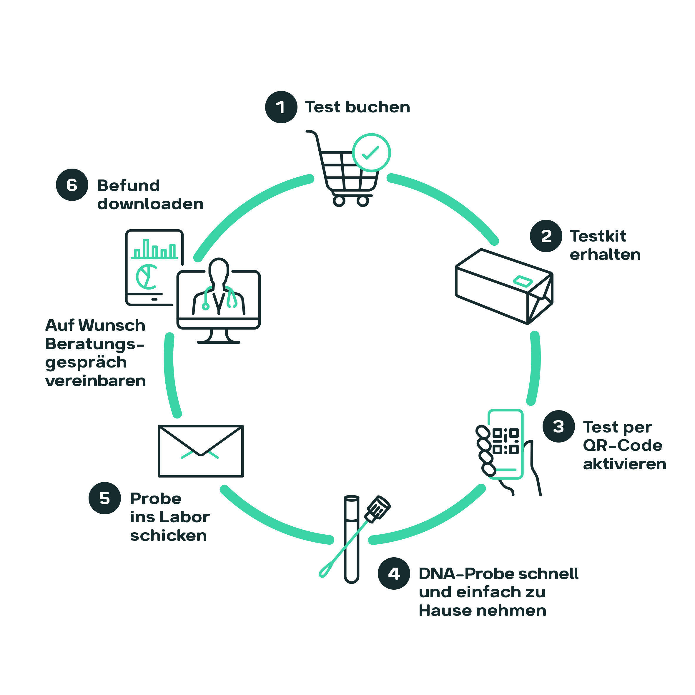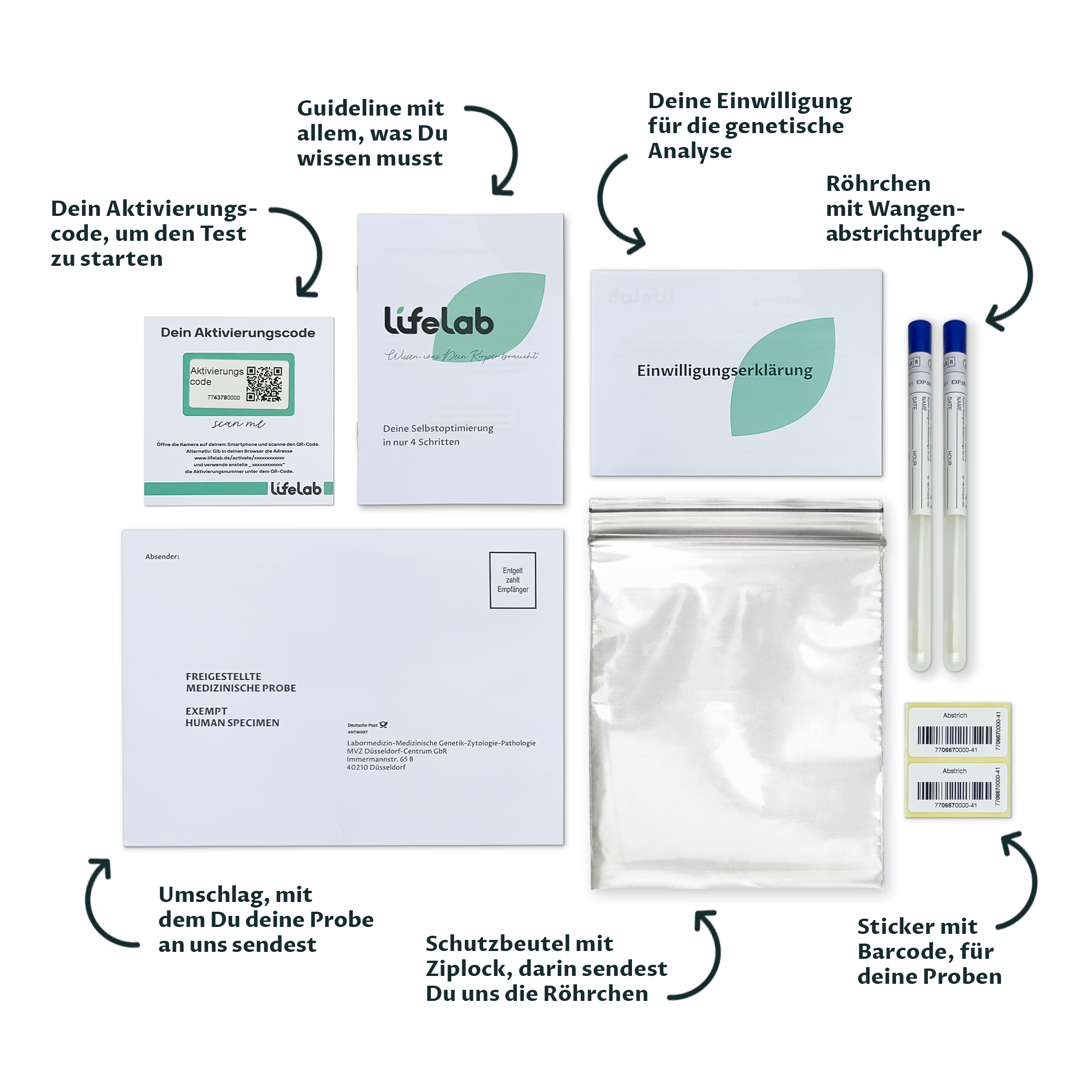 Am Tag der Blutentnahme brauchst Du nur deinen Test mitnehmen. Vergewissere Dich bitte, dass Du die Aktivierung und Registrierung vorab durchgeführt hast. Mundschleimhautabstriche kannst Du ganz einfach zuhause selbst durchführen.