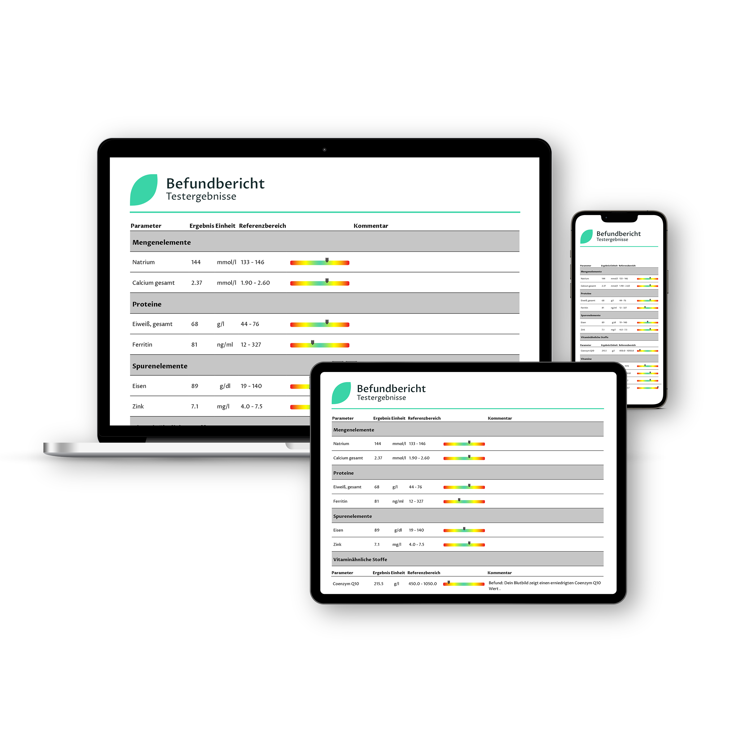 Dein persönlicher Befund mit individuellen Empfehlungen ist nach der Analyse in unserem Partnerlabor online einsehbar.